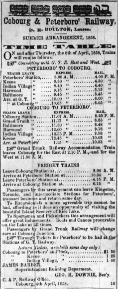 - 1854 - Cobourg and Peterborough Railway constructed.