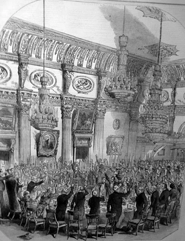 Recently, John Fowler has turned his attention to literary pursuits. He has entered the field as a public lecturer. Accustomed to bullying "navvies" he has picked up a classical style of speech, which he carries with him to the rostrum. He frequently rounds a polished period with an oath that makes the hair of piously inclined people stand on end, and draws out "three times three" from the sporting characters in the "pit". And as for blackguardism, why, Mrs. Moriarty with whom Dan O'Connell had such a remarkable passage at arms, could not in her palmiest days "hold a candle to him."