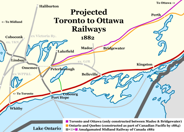 Projected Routes of the Toronto-Ottawa Railways 1882