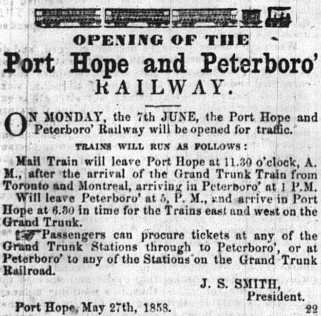 - 1846 - Incorporation of The Port Hope and Peterborough Railway