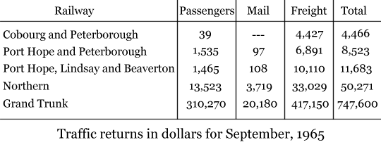 - The Whitby, Port Perry and Lindsay Railway (projected $105,000 per annum)